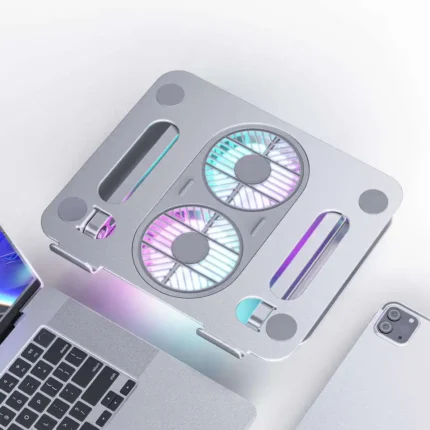 Suporte almofada de refrigeração rgb, multi ângulo, ajustável, dois ventiladores, ergonômico, portátil, dobrável, de alumínio, suporte para laptop, venda imperdível