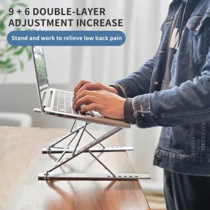 Suporte de notebbok original, suporte ajustável de altura 6 + 9, portátil, ergonômico, dobrável, camada dupla, suporte de laptop de alumínio