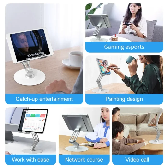 Home Cellphone/Tablet Holder Suporte giratório ajustável para tablet portátil em liga de alumínio 360 W, original de fábrica, porta-comprimidos dobrável e giratório